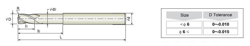 二刃深溝圓鼻銑刀-石墨圓鼻...